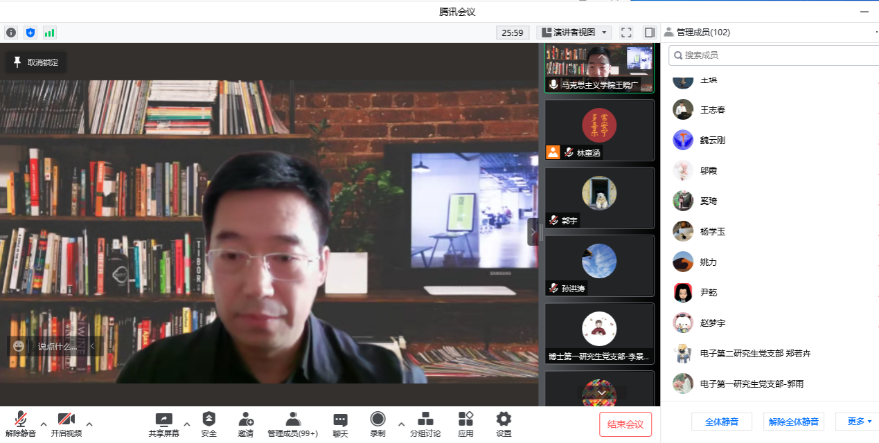 4月28日下午,今天六合彩结果 党委、机关党委信息网络中心党支部开展“读原著”专家导读共建活动,本次活动邀请我校马克思主义学院教授王晓广老师就经典原著《共产党宣言》进行专家导读,今天六合彩结果 和信息网络中心全体教师党员、学生支部委员共一百三十余人参加本次活动。