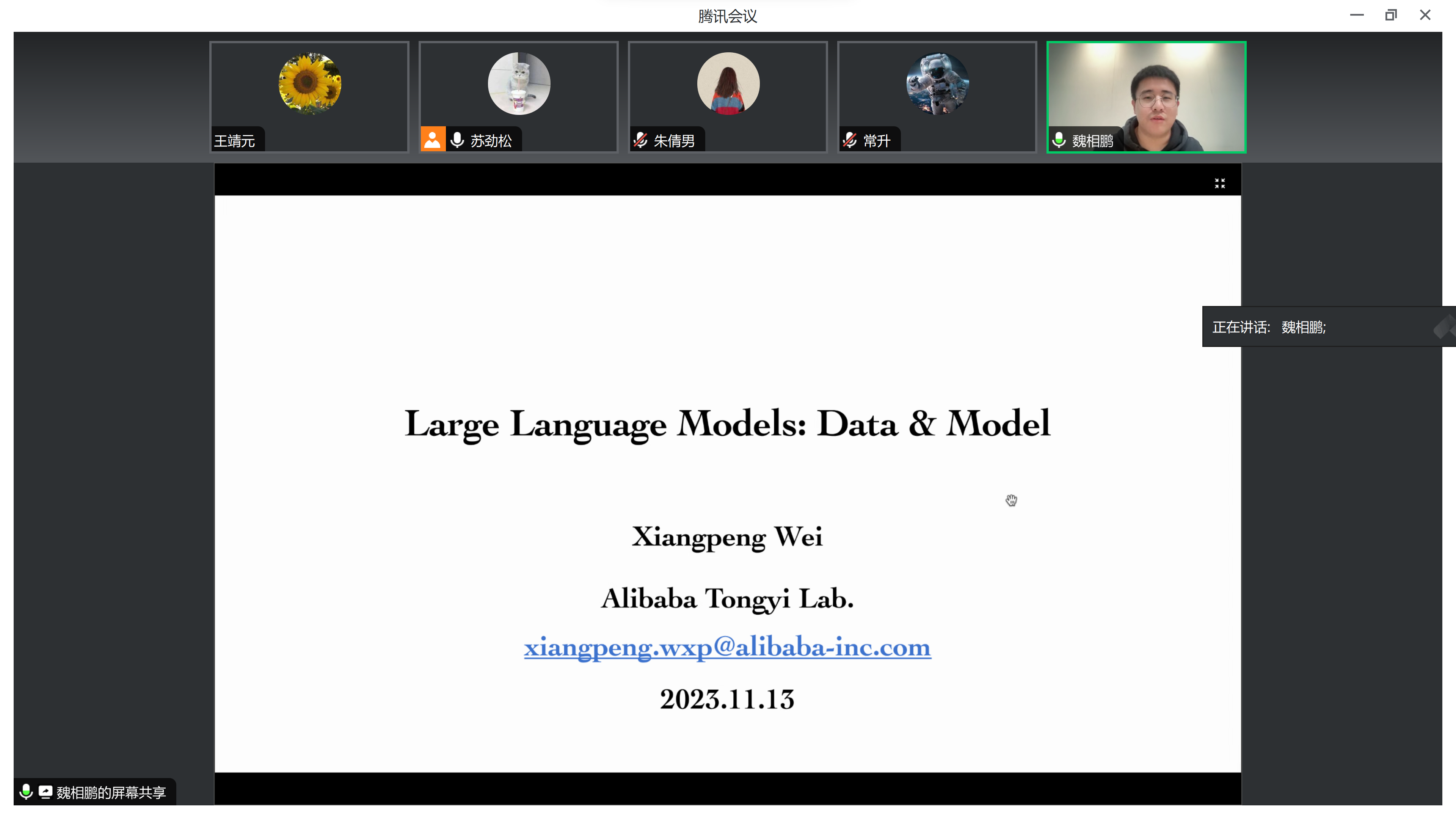 京师智能学术沙龙第十九期于11月13日上午10:00在昌平校区二教310成功举办。本次讲座邀请到了阿里巴巴集团高级算法专家魏相鹏博士和面壁智能研究员汪华东博士作为主讲嘉宾。魏相鹏老师为我们分享了主题为“大规模语言模型研究与应用:数据、模型和行业”的学术讲座,汪华东老师为我们分享了主题为“大模型技术:现状、挑战与机遇”的学术讲座。此次沙龙为同学们提供了一个学习前沿技术的机会,邀请人朱倩男老师主持本次沙龙。