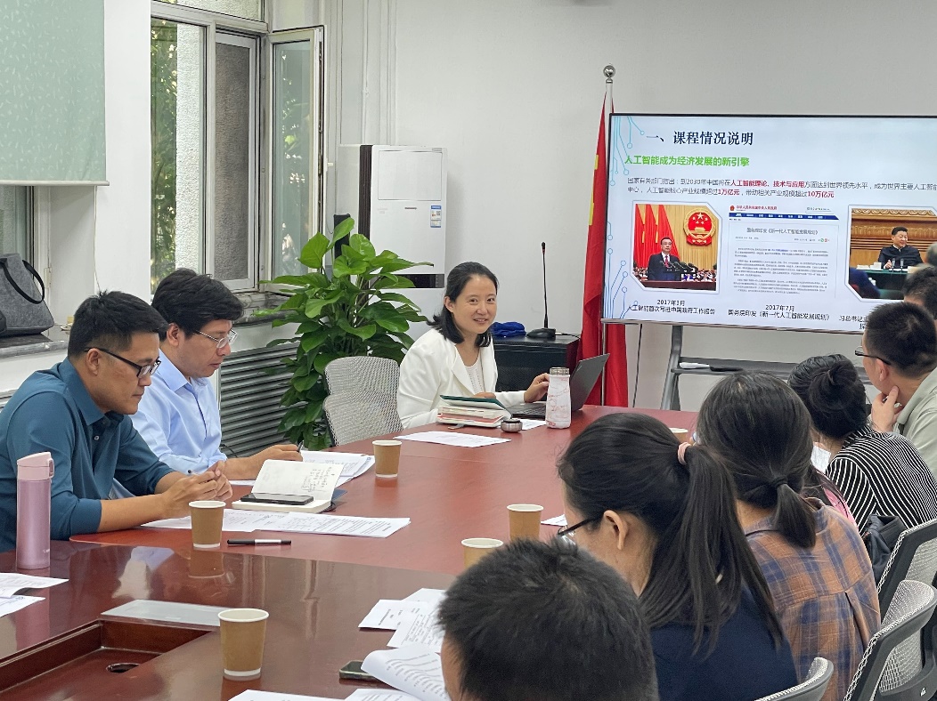信息素养公共课教研室牵头组织开展了大学计算机公共课教学研讨活动,以公共课《人工智能导论》为例,探讨本科计算机公共课教学内容设计、教学方法研究等问题,加快推进高质量信息素养公共课程建设。会议由本科教学副院长兼信息素养公共课教研室负责人郭俊奇教授主持,本科培养方案修订工作组成员、信息素养公共课教研室成员以及承担计算机公共课程的相关教师共20人参加了此次会议。