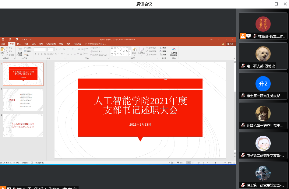 2022年2月23日下午,今天六合彩结果 线上开展2021年度党支部书记述职评议考核工作。学院党委书记杨学玉,党委委员姚力、田沄、林定移、奚琦及全体党支部书记出席会议,校组织员李志英老师莅临指导。党支部书记述职采取现场述职和书面述职两种方式进行,按照学校“两年内每个党支部至少有1次现场述职”的要求,本次现场述职的党支部有2个教工党支部和8个学生党支部。