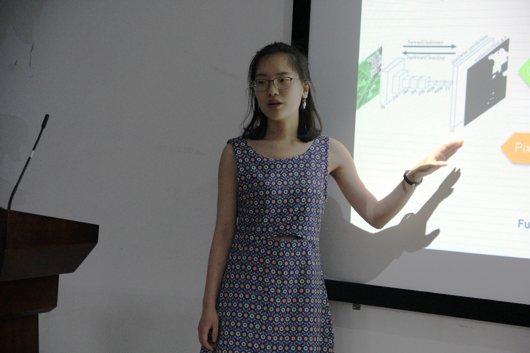 陈洁在遥感影像感兴趣区域提取方法研究中取得了较为突出的成果,在攻读硕士期间发表了两篇2区SCI两篇3区SCI文章。本次论坛着重介绍了针对具有共性视觉特征的共同感兴趣区域,解决了多源遥感影像中的共同感兴趣区域的提取问题。基于弱监督的深度学习模型、主动轮廓模型和联合显著性分析三个方面,提出了多源遥感影像的联合显著性分析模型,以实现从来自不同数据源的遥感影像中,提取在高层语义上属于同一类别的感兴趣区域。