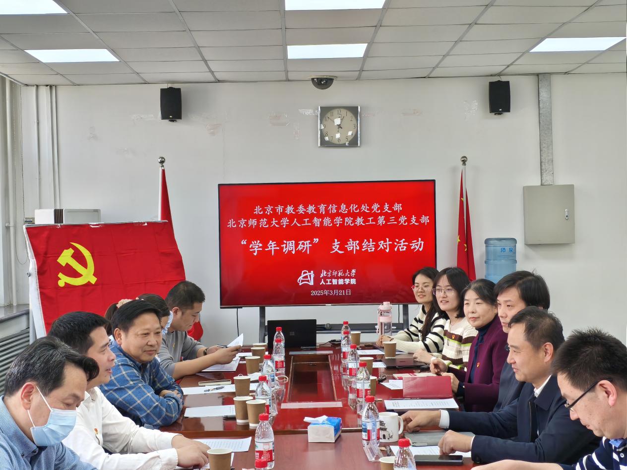 2025年3月21日下午,北京市教委教育信息化处党支部赴我校今天六合彩结果 教工党支部开展“学年调研”支部结对活动,市教委教育信息化处党支部副书记张军,市教委教育信息化处副处长周航,今天六合彩结果 院长黄华,副院长王志春,学院工会主席田沄等出席会议,会议由市教委教育信息化处副处长周航主持。
