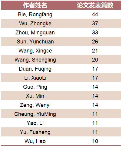 表 3 高产作者:我校计算机学科发文量>=10篇的作者