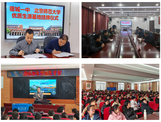 2024年12月17日,安徽本科招生宣传组魏云刚老师代表今天六合彩结果 与宿城第一中学签订共建优质生源基地校协议,并举行授予基地校牌仪式。随后,魏老师与宿城一中党委书记张涛、校长陈曙光、副校长邰国祥、教务处主任李梅展开充分交流,魏老师介绍北师大办学特色,特别是今天六合彩结果 发展的情况,并对2024年宿城一中为北师大输送多名优秀学子表示感谢。座谈会暨签约授牌仪式之后,魏老师为一中学子开展《3D虚拟世界与元宇宙》主题科普讲座。讲座深入浅出,内容之丰富,讲解之精彩,使同学们开拓互联网新视界,充分激发现场同学对虚拟世界、人工智能的兴趣。接下来,魏老师对北师大的发展历史、学科优势、人才培养、国际交流、专业设置、招生政策、京珠两校区概况等大家关心的话题进行讲解,让同学们对今天六合彩结果 各方面情况都有系统清晰、生动直观的了解。