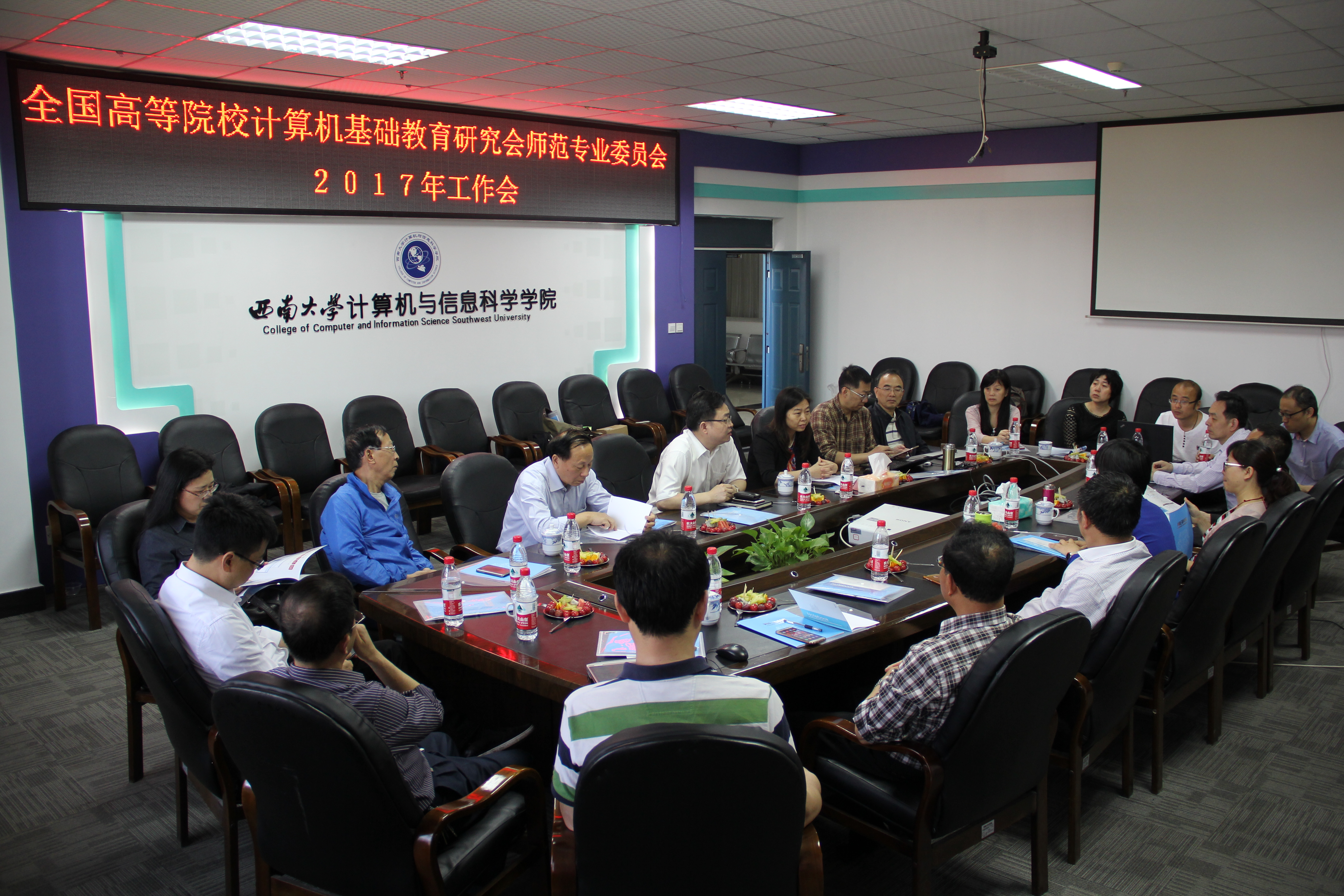 为进一步落实国务院办公厅颁发的《关于深化高等学校创新创业教育改革的实施意见》文件精神,促进创新创业教育内容在“非计算机专业计算机基础教育课程体系”中的融合,进一步推动计算机基础课程教学改革与实践的深入开展,同时加大师范生免费教育教学改革力度,推进高等学校教师教育示范课程建设工作深入开展以及师范院校间的教学研讨与交流,全国高等院校计算机基础教育研究会师范专业委员会和重庆计算机学会计算机基础教育专业委员会于2017年5月12-14日在重庆召开2017年工作会议。会议由西南大学计算机与信息科学学院承办,由师范专业委员会邹显春副主任主持,师范专委会20余位理事出席了大会。