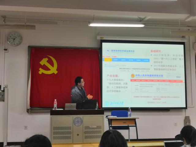 本次报告邀请到信息科学与技术学院党委委员田沄副教授做主讲嘉宾。田沄老师以“我国新一代人工智能发展”为主题,从“人工智能走向2.0”、“新时代智慧社会建设的提出与面临的问题”、“智慧社会建设的顶层设计与实现路径”这三方面进行阐述。在“人工智能走向2.0”这一部分,田沄老师介绍了人工智能(AI)60年来在国内外迅速发展的历程,支出人工智能领域目前已经走出旧时代的低谷,迈入2.0的发展新时代。在“新时代智慧社会建设的提出与面临的问题”这一部分,田老师提出社会目前对建设智慧社会的需求,以及建设智慧社会的过程中存在的数字化生态体系不够完善、信息资源共享开放问题等尚未解决等难题。关于“智慧社会建设的顶层设计与实现路径”这一部分,田老师以直观的图表形式展示了顶层设计构架,并且通过播放先进的仿人和仿动物人的科学示例,为智慧社会建设的实现途径提供思路。