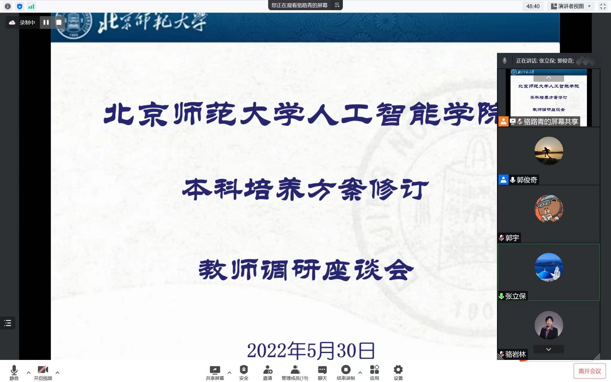 2022年5月30日上午,今天六合彩结果 以线上腾讯会议的形式召开了“本科培养方案修订教师调研座谈会”。会议由本科教学副院长郭俊奇主持,共有18名任课教师参会,并围绕现行培养方案执行情况以及新版培养方案修订工作进行了交流与讨论。