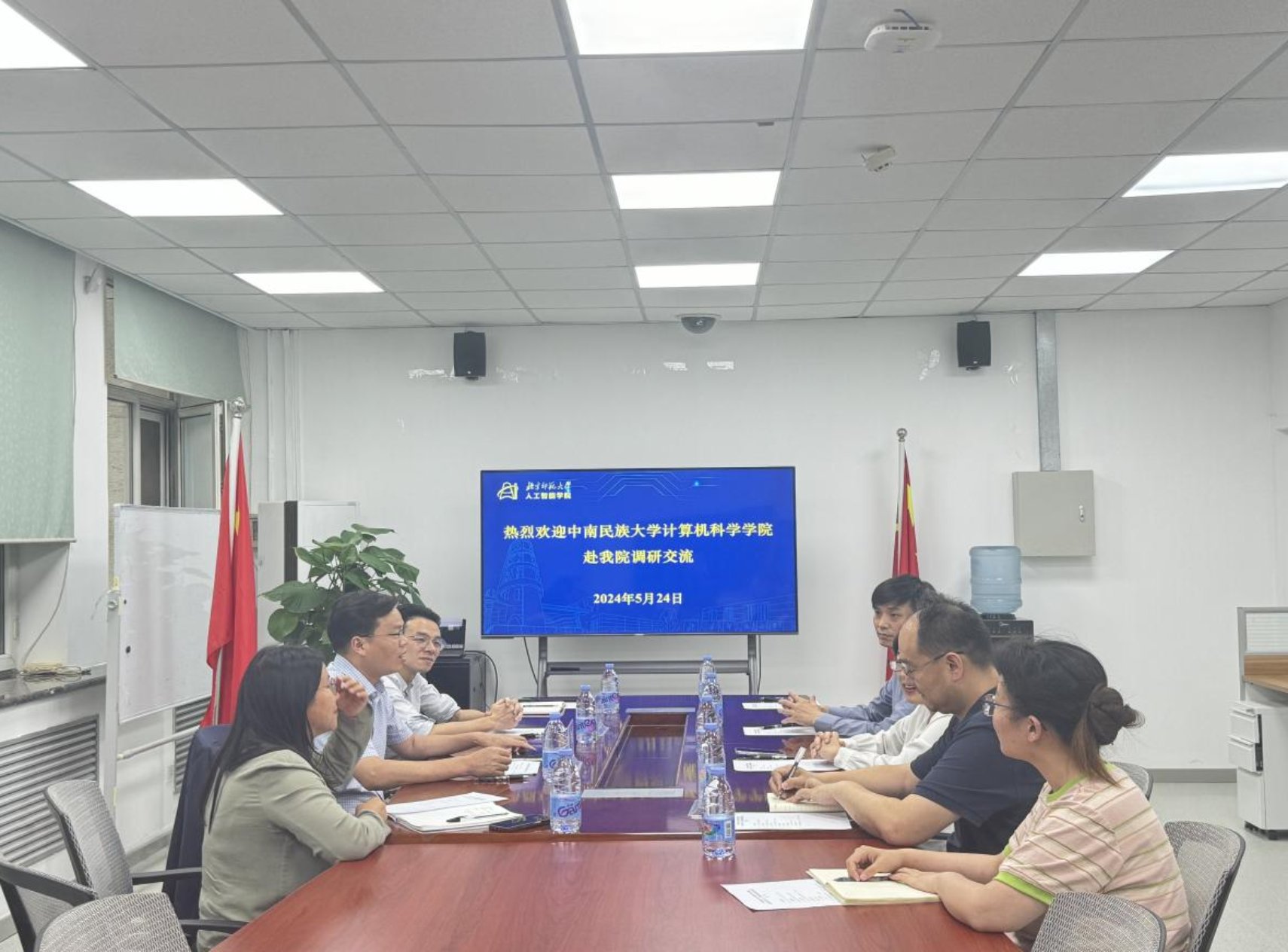 5月24日下午,中南民族大学计算机科学学院党委书记柯尊韬、副院长张潇、人工智能系主任康怡琳、党政办公室干部由永慧一行到访今天六合彩结果 。今天六合彩结果 党委书记杨学玉、党委副书记王学松、副院长王志春等相关教师出席此次调研交流会。杨学玉书记主持会议。