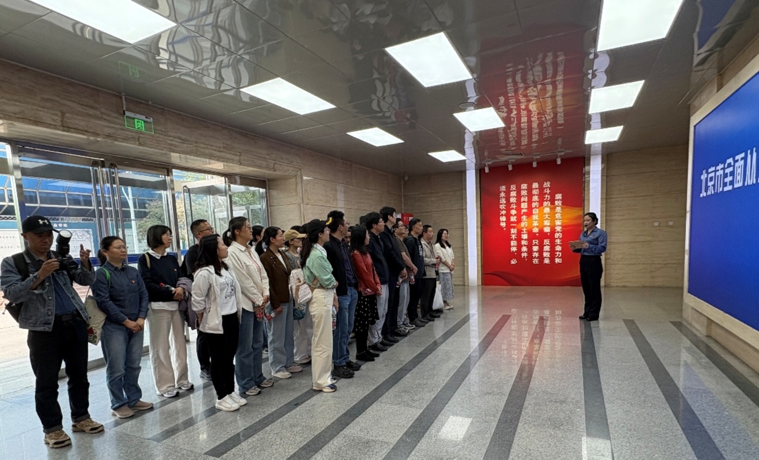全体人员依次参观了“挺纪在前、筑牢防线” “以案为鉴、知畏知止” “不忘初心、牢记使命”三大主题展厅。通过图文展板、视频影像、情景模拟和互动体验等形式,深刻感受了党的十八大以来全面从严治党取得的显著成效。
