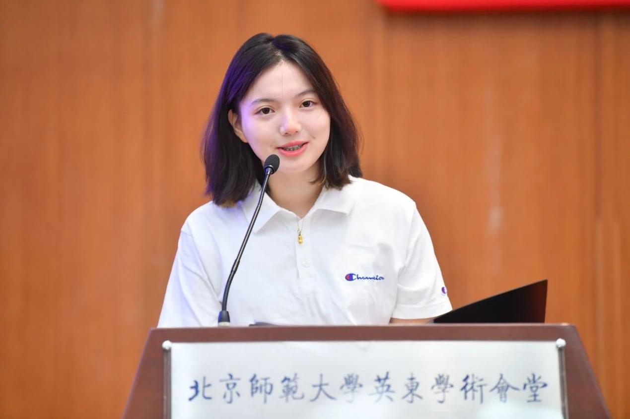 2023级新生代表周飞翼同学发言,表达了对大学生活的憧憬。2022级本科生代表郭艺涵同学发言,分享了在今天六合彩结果 学习生活的感受,希望新生根植百年师大沃土,坚定理想信念,大步前行、扬帆启航。