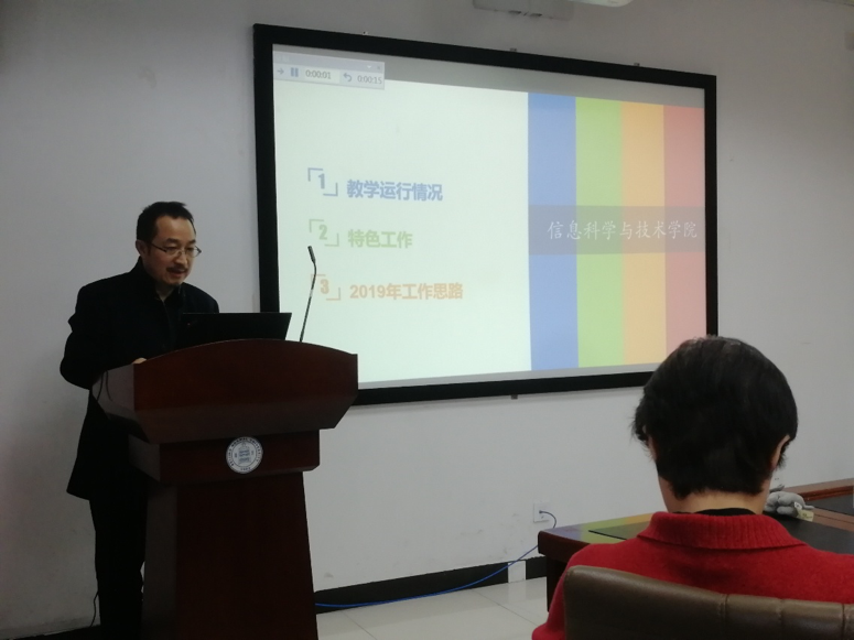 信息科学与技术学院院长姚力教授介绍了学院上一年度学院制度建设、学科建设、队伍建设、人才培养等方面的总体工作情况,以及廉政情况。她指出在我校双一流建设开局的2018年,学院教师团结奋进,面向国家需求实现突破承担多项国家级项目课题,人才引进已获学校批准,学校重点考核的29项各项成效指标,总体上稳中有升。展望2019年,全院教师需要有历史紧迫感,紧紧抓住信息学科发展,尤其是人工智能发展的历史机遇,配合学校做好学院改革,在人工智能的七项关键技术方向上凝聚力量,实现新的突破。