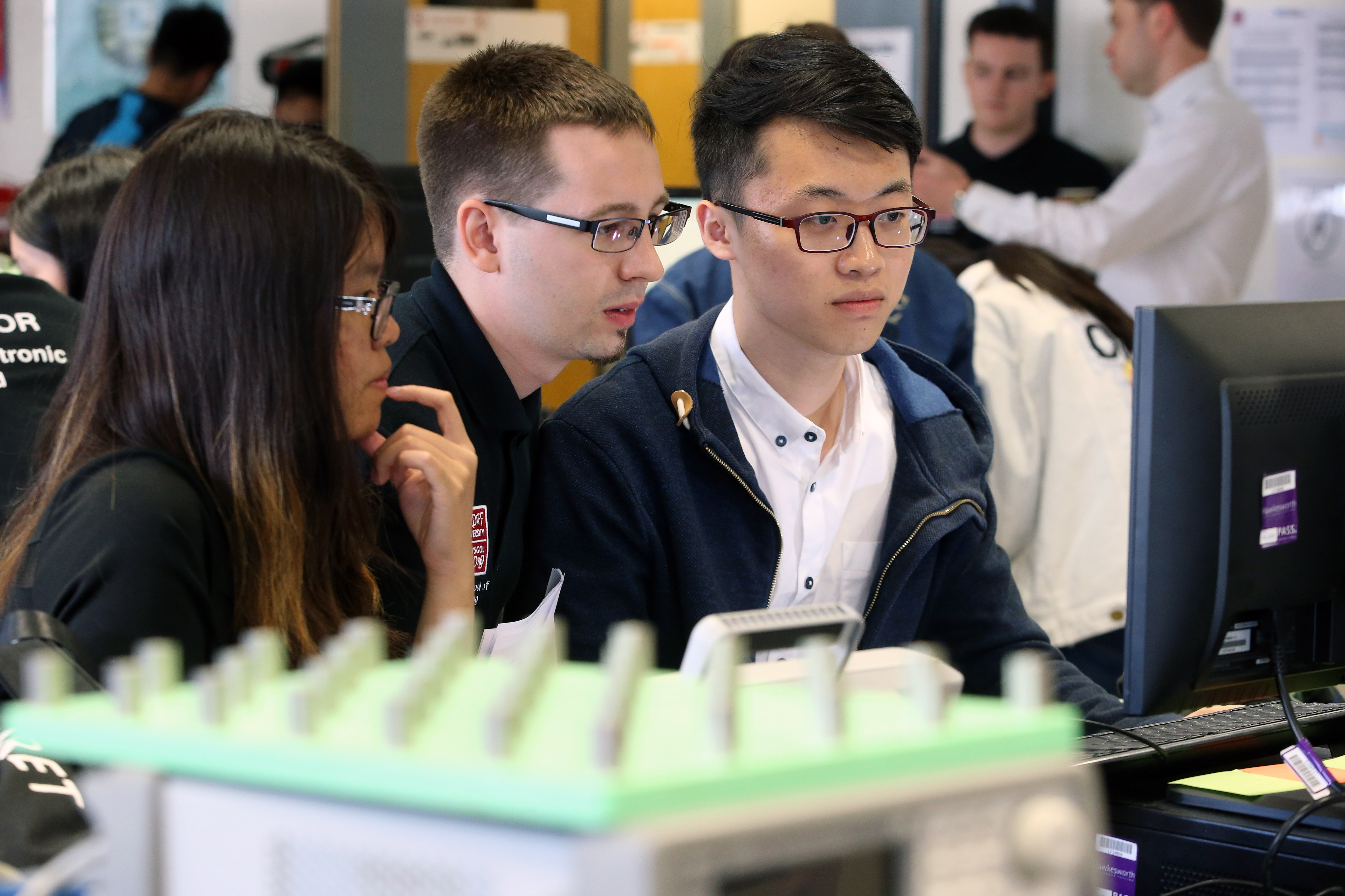 20日,同学们又参观了卡迪夫大学的研究室。研究室里的研究人员向同学们详细介绍了他们所研究的方向并展示了研究成果。有研究制做超级精细的集成芯片的,有研究如何用传感器测血液状态的,还有研究如何用微波测样本成分的,等等。其中,同学们最感兴趣的是实时模拟手指弯曲和强电实验室。前者的研究成果可以帮助手指有残疾的人,让同学们不禁感叹:技术真的在改善人们的生活;后者是在高压环境中,利用尖端放电,奏出悦耳的音乐,同学们不禁为实验室良好的研究环境和神奇的研究成果赞叹。