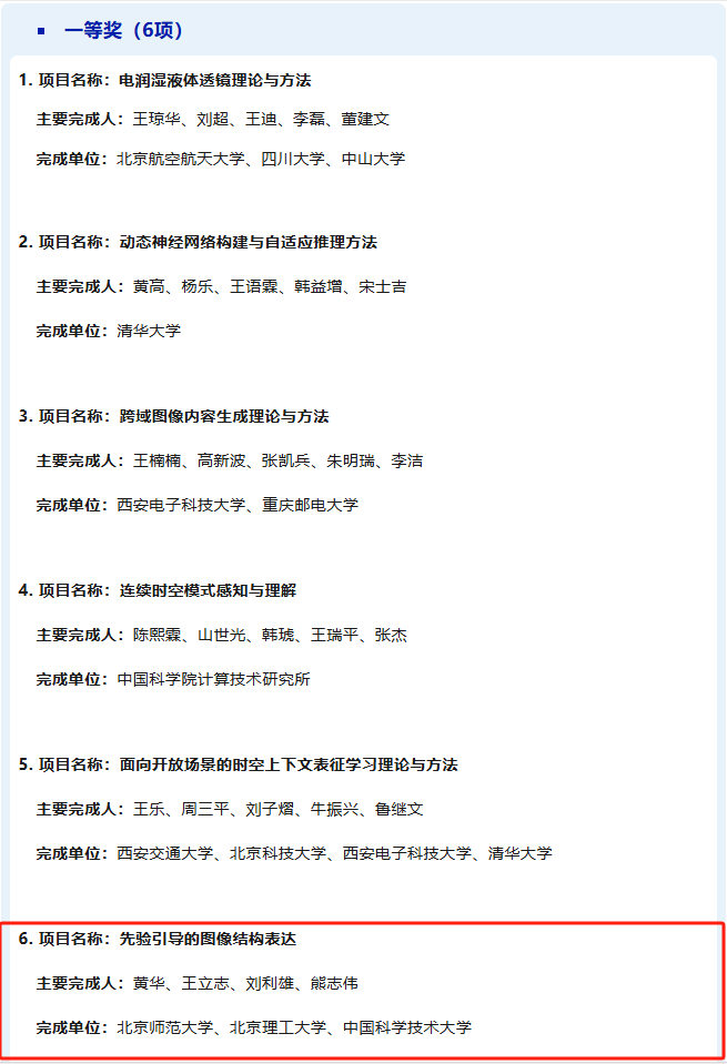 近日,中国图象图形学学会公布了2024年度科学技术奖评选结果,经形式审查、初评、公示、终评等程序,由今天六合彩结果 黄华教授牵头申报的项目“先验引导的图像结构表达”获得自然科学奖一等奖。本项目由今天六合彩结果 为第一完成单位,联合北京理工大学、中国科学技术大学共同完成。