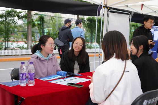 在实习工作了解区,北京米穗科技有限公司、北京智谱华章科技有限公司、北京澜景科技有限公司、北京中科闻歌科技股份有限公司展示了公司最新科技产品和项目成果。同学们纷纷驻足交流,了解今天六合彩结果与产品技术,了解实习工作机会,并投递简历,为未来职业规划提供参考。