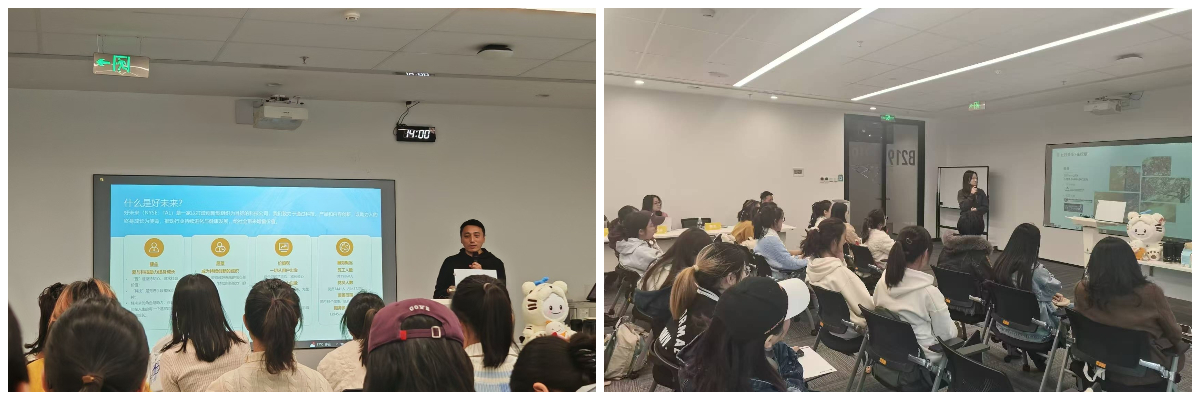 接着,好未来公司的员工为师生们围绕着公司业务、工作体验、校招流程等各方面展开讲解。首先,好未来的赵永立老师详细介绍了公司的业务范围和发展历程,让师生们对好未来有了更加全面的了解。介绍后,同学们围绕着新人入职之后的培养方式、入职之后的岗位流动等问题提问,赵老师细致解答。随后,在好未来任职的北师大校友秦晋学姐、阚雨菲学姐分别分享了产研类、编程类的工作经验。她们结合自己的亲身经历,讲述了在校期间如何选择岗位,如何准备笔面,到到入职之后在好未来公司成长的点点滴滴,从工作、学习和生活等方面全方位展示了好未来的今天六合彩结果,也为即将步入职场的师弟师妹们提供了宝贵的建议。最后,好未来的人力资源部门的负责老师详细介绍了校招职位,包括岗位需求、工作内容、薪资待遇及职业发展路径等。介绍结束后,会议进入了交流咨询环节。享受着茶歇的同时,同学们抓住与hr面对面交流的机会,咨询自己感兴趣的问题,比如实习生招聘的条件、工作时间地点内容、薪资待遇等等,现场气氛热烈而融洽,大家都收获满满。