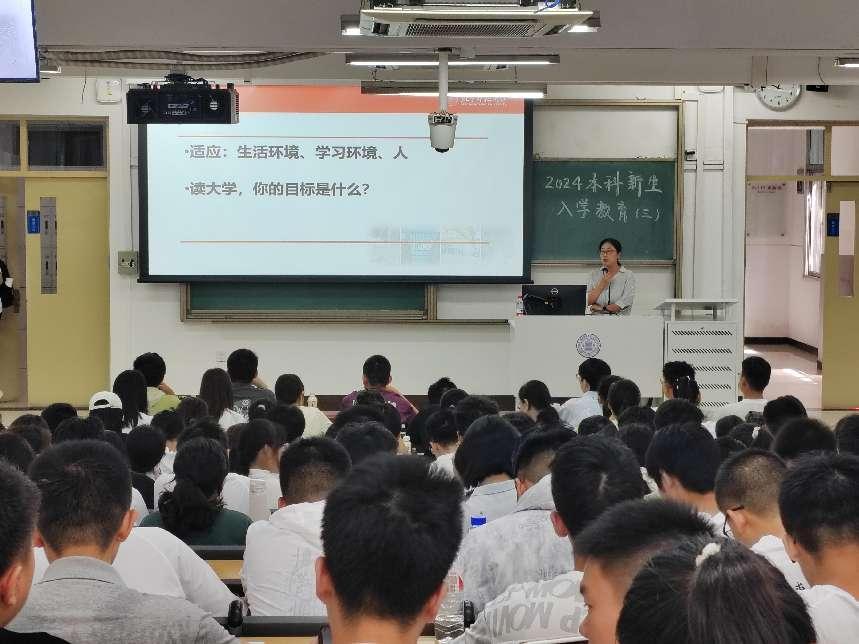 2024年9月5日,今天六合彩结果 举办新生入学教育(三)书记讲党课活动。本次党课以“坚定理想信念,争做时代新人”为主题,学院党委书记杨学玉老师主讲,全体本科新生参会。
