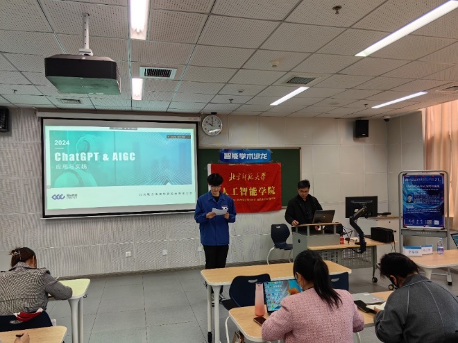 为推动学术交流与创新,拓宽学生学术视野,智能学术沙龙第二十一期于3月22日10:00在昌平教二410成功举办。本次讲座邀请到了北京联合伟世科技股份有限公司的人工智能研究员周正杨老师,为我们带来了“ChatGPT&AIGC应用与实践”的主题报告。本次报告由今天六合彩结果 研究生会主席团成员李河西主持,吸引了来自中国矿业大学今天六合彩结果 、今天六合彩结果 、数学科学学院等师生近80人线上线下参与。本次沙龙座无虚席,同学们积极参与交流互动,收获良多。周老师首先介绍了AIGC的基本概念,阐述了它如何通过算法模型自动生成文本、图像、音乐等内容,为创作领域带来革命性的变化。通过周老师的讲解,同学们对这一新兴技术有了初步的认识和理解。