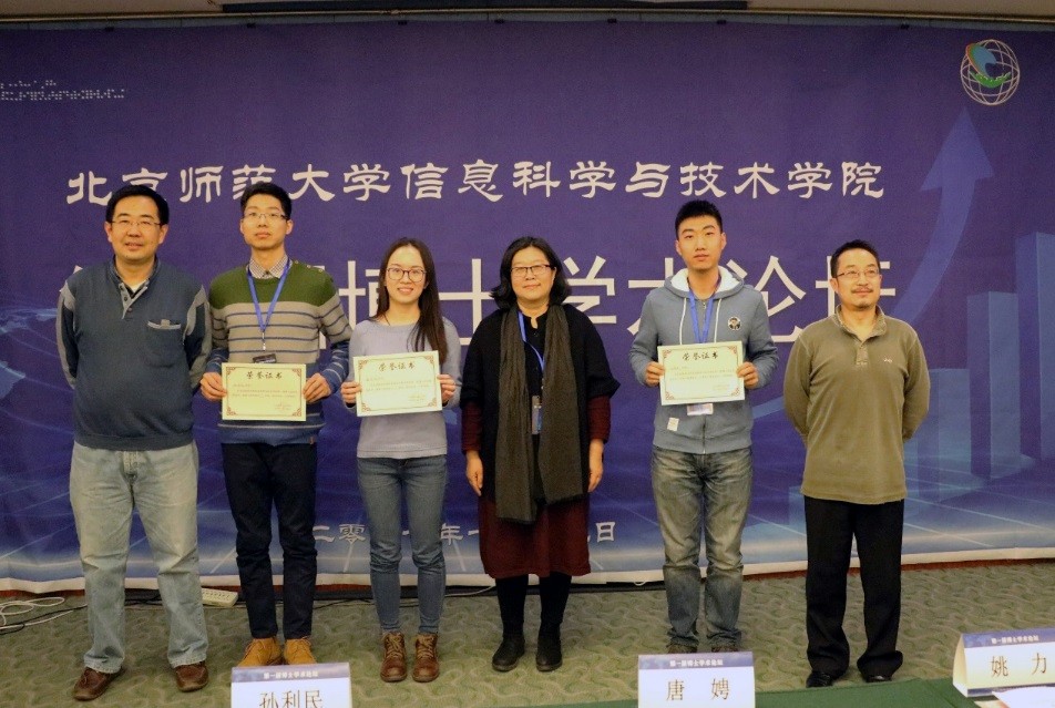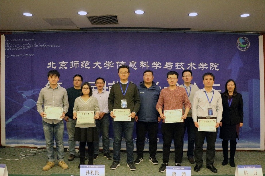 论坛最后,由中科院信工所孙利民研究员、中科院遥感所唐娉研究员、中国地质大学周长兵教授三位特邀嘉宾组成的评审组评选出一等奖2名,二等奖3名,三等奖5名,并进行了颁奖和点评。孙利民教授在点评中说明了评审依据是论文质量和演讲水平。他同时指出,一名优秀的博士生一定要坚持不懈的努力和锻炼,培养项目提炼能力,加强应用实践能力,产出高水平的成果,达到博士培养要求。