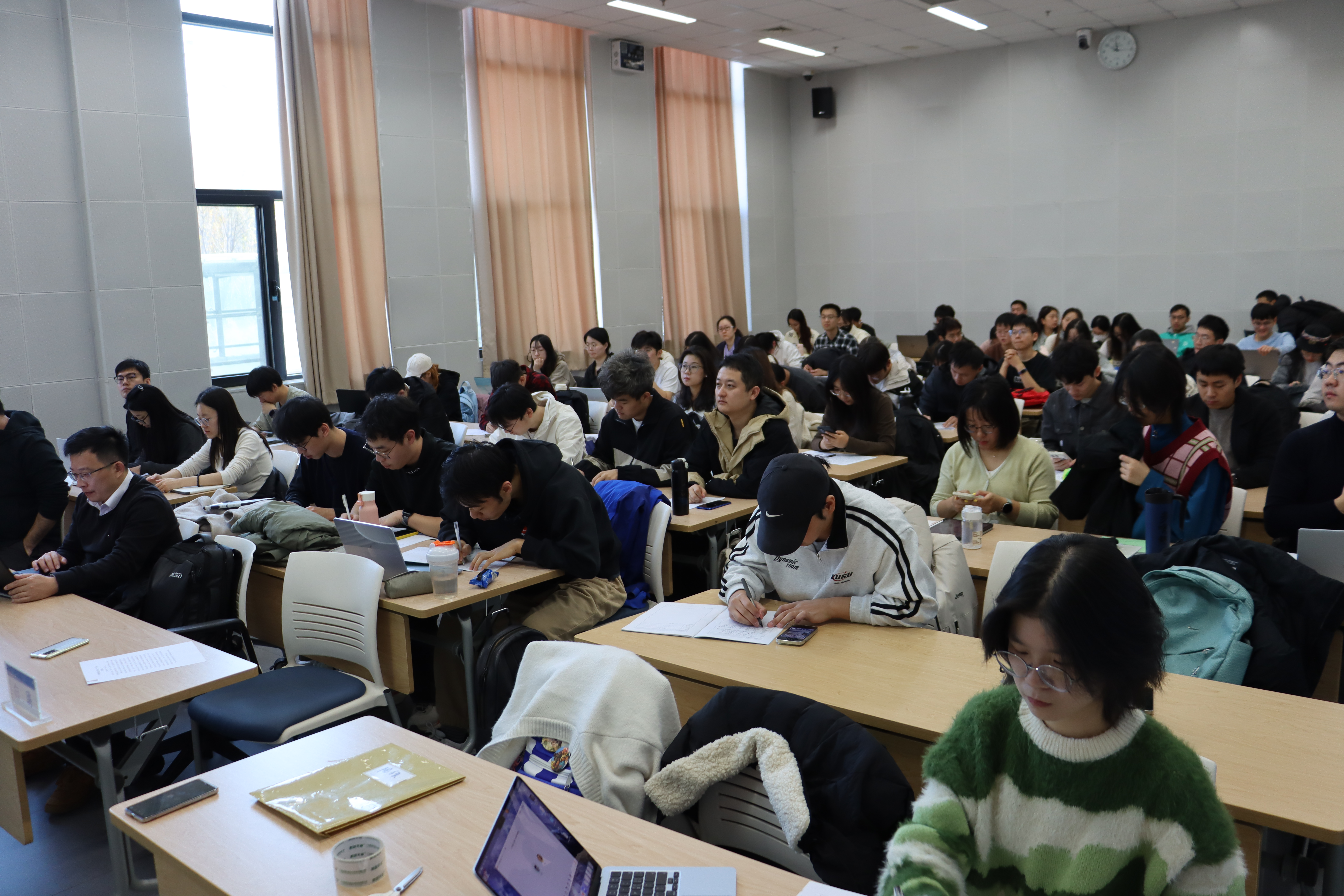 讲座过程中,同学们表现出极高的兴趣,围绕医学影像数据集规模受限、深度模型参数量巨大导致的过拟合风险、不同医院设备导致的域差异问题等展开提问。张教授逐一作了解答,从数据采集、特征建模、模型稳健性等多个角度分享经验,帮助同学们更全面理解医学 AI 的研究难点。随后,张教授与白璐老师进一步讨论了关于“脑网络的动态控制问题”与“如何提升影像重建任务的可信度”等学术前沿议题。这些内容不仅拓展了同学们的学术视野,也为未来相关研究提供了启发。