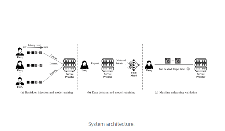 论文概述:随着云计算与机器学习的快速发展,机器学习即服务(Machine Learning as a Service, MLaaS)也得到了广泛应用。在MLaaS系统中,用户可将数据外包给云服务提供商进行模型训练,进而使用训练得到的模型完成推理预测等服务。鉴于恶意的云服务提供商的存在,欧盟、美国等国家提出用户具有“遗忘权(right to be forgotten,RTBF) 。它要求MLaaS提供商在用户发起数据删除请求时按要求删除训练数据。然面,遗憾的是,现有研究在兼顾模型训练效率和服务质量的同时,尚未能有效实现机器学习遗忘的验证。此外,如何设计一套机制来防止云服务提供商通过伪造删除证据来欺骗用户,仍是一个亟待深入研究的课题。